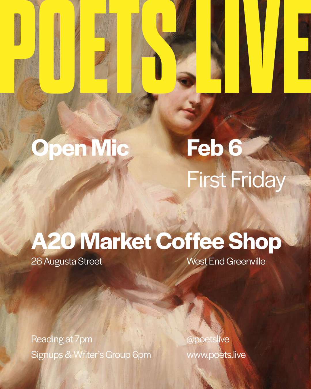 Upcoming live poetry events in and around Greenville, SC. Follow us on Instagram.